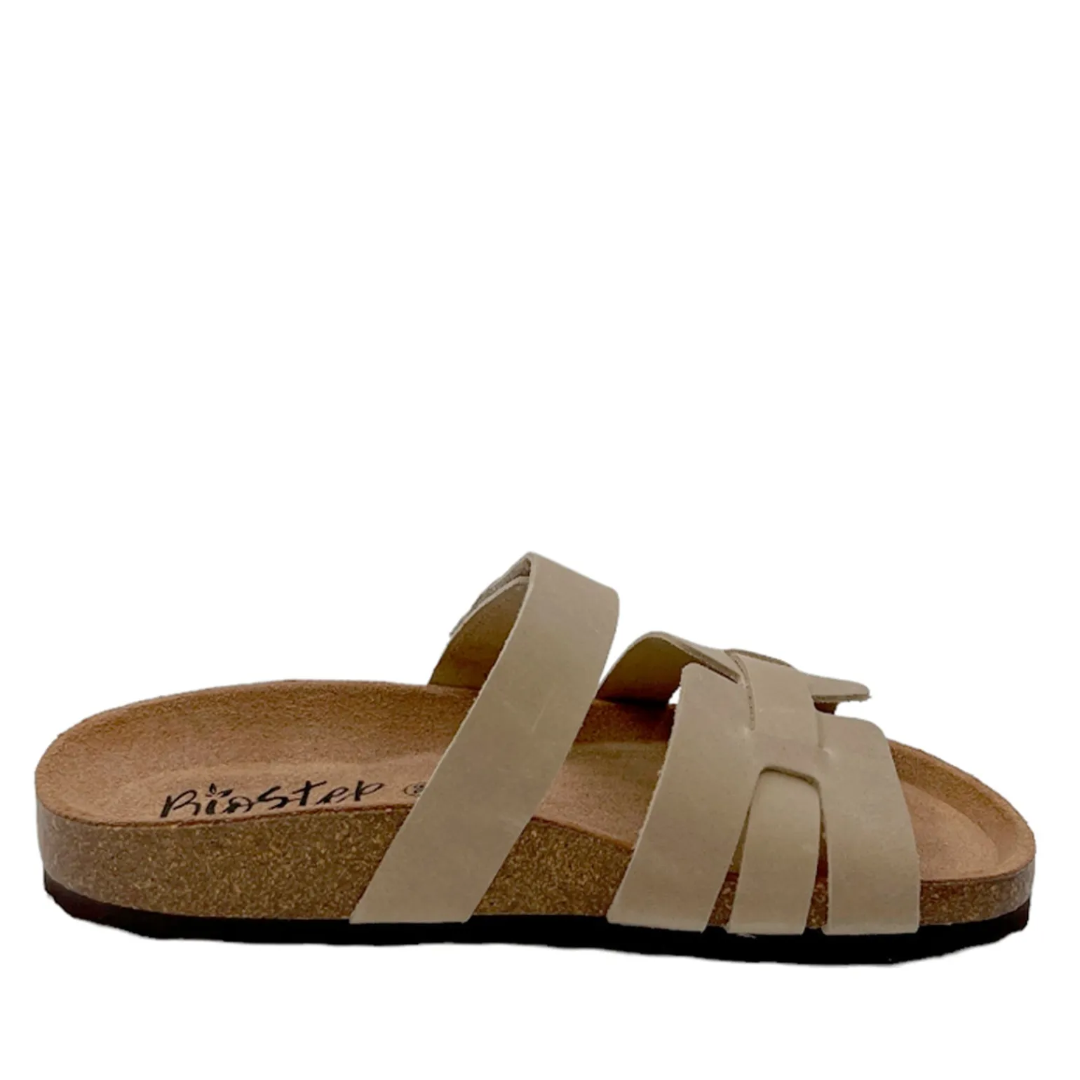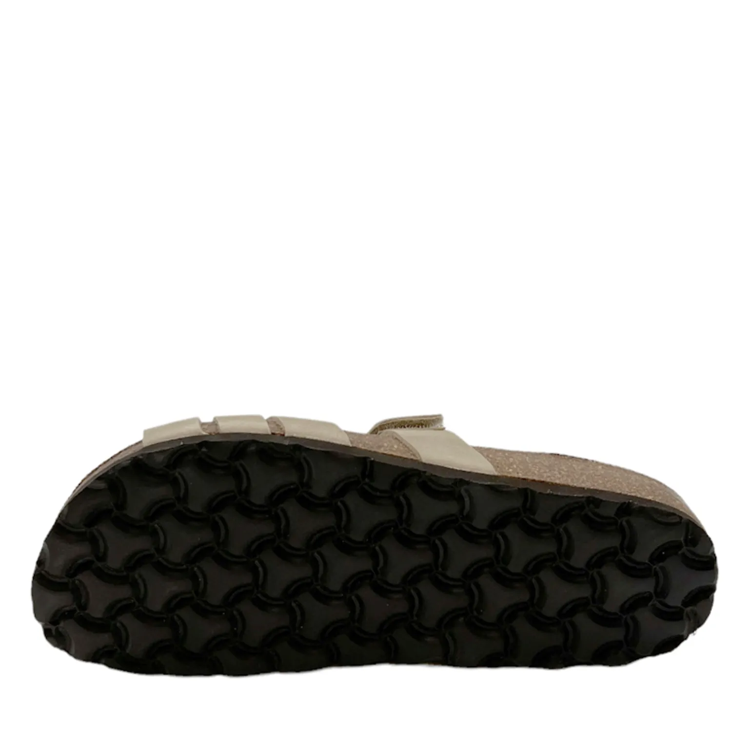 Beige sandal med velcro rem i skind og med komfortabel fodsengssål.