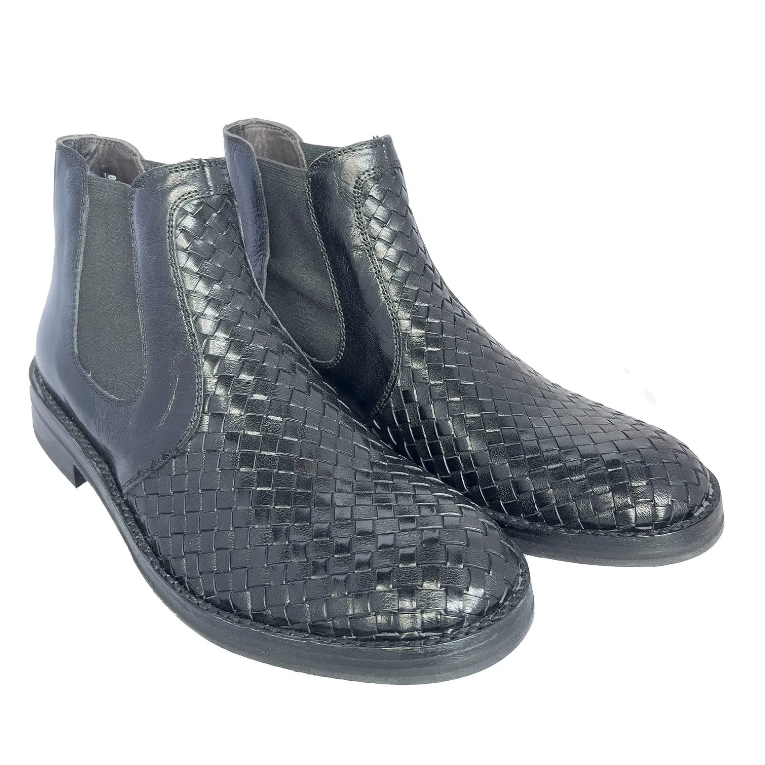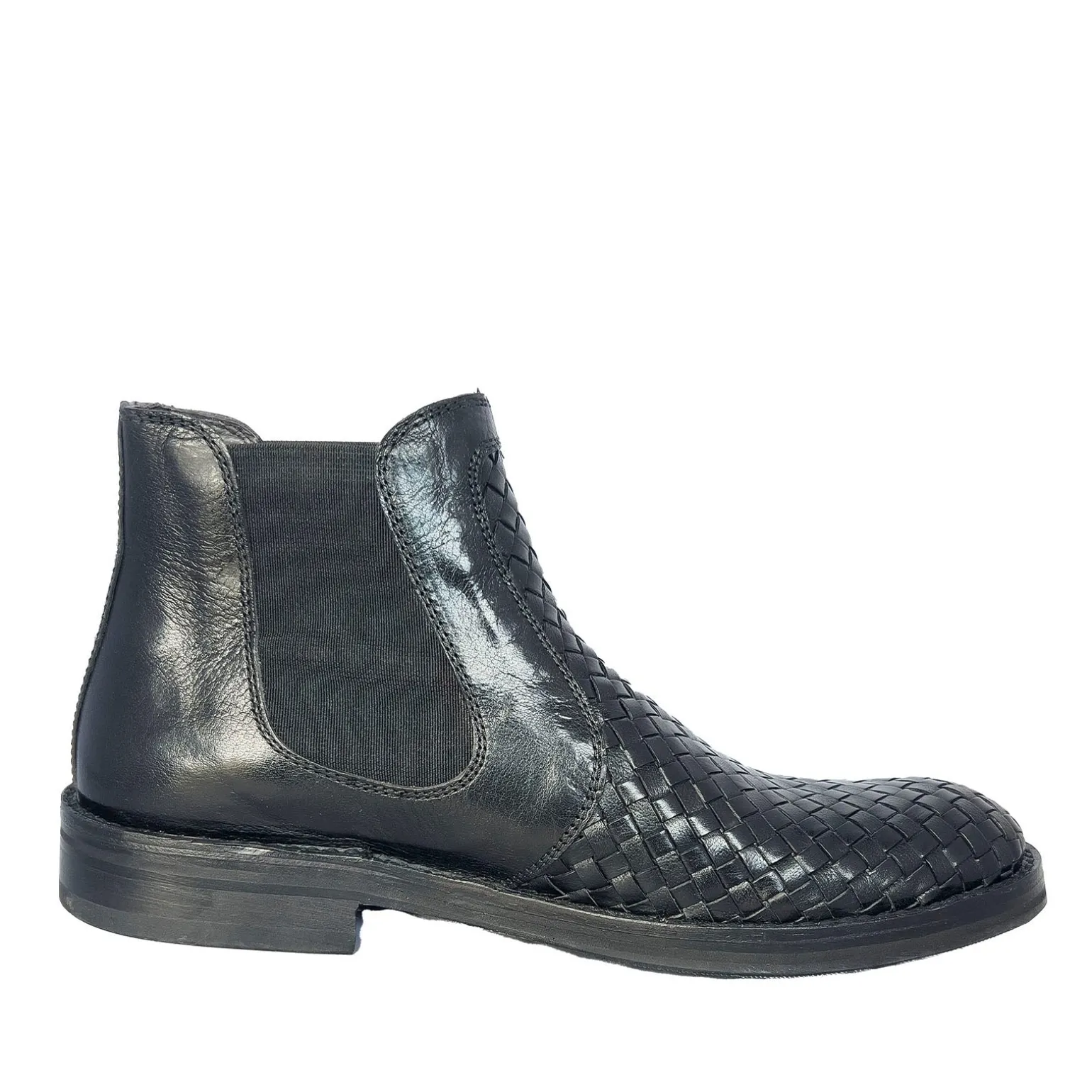 Klassisk herre Chelsea fletstøvle i sort skind med rund snude og elastik i begge sider. Lavet på skindsål betrukket med slidstærkt gummi.