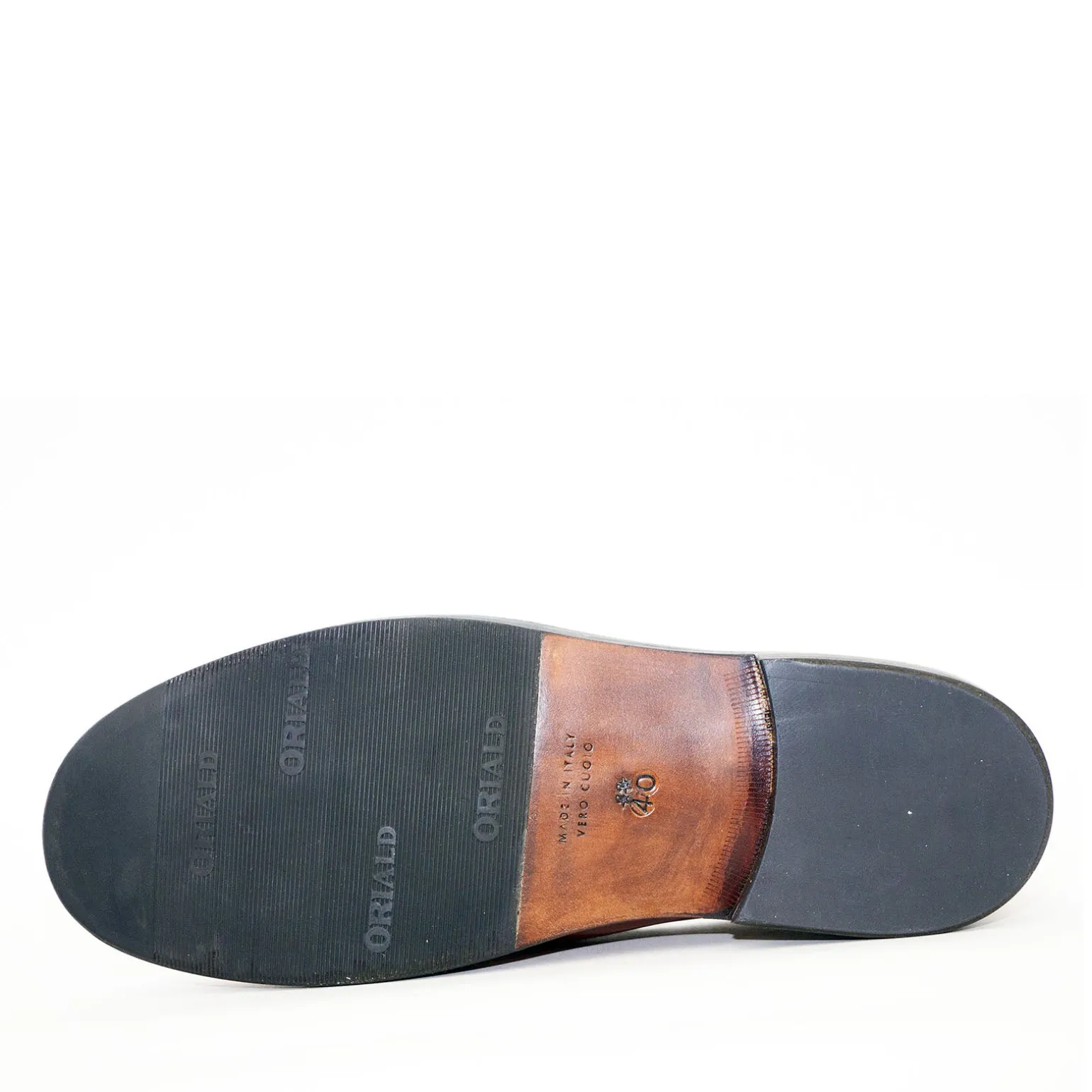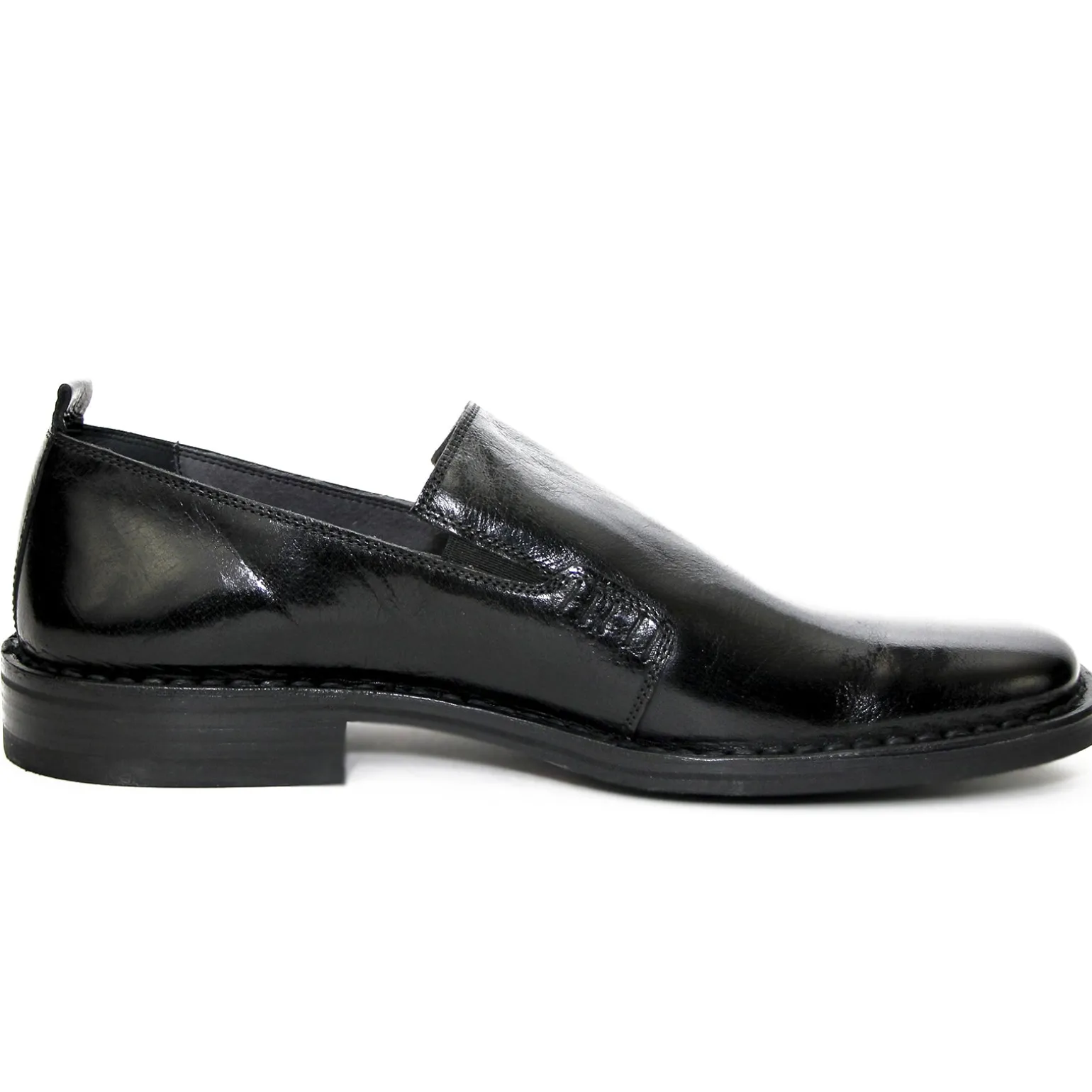 Klassisk herre loafer i sort skind med rund snude, lille elastik i siderne og strop bagtil. Skoen er lavet på skindsål betrukket med slidstærkt gummi.