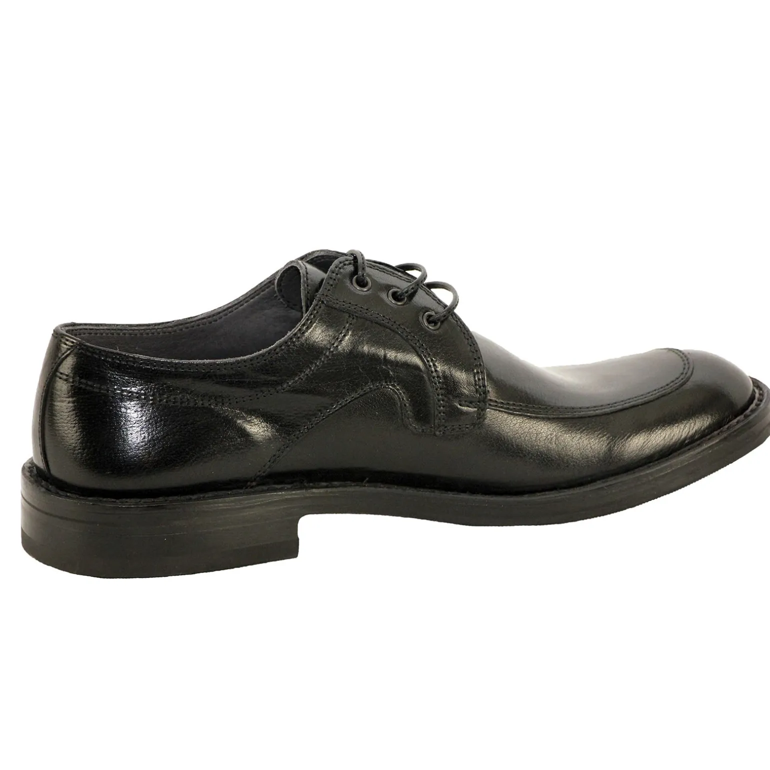Klassisk Bubetti herresnøresko i sort vegetabilsk garvet skind med syning på forfod og lædersåler betrukket med sort gummisål.