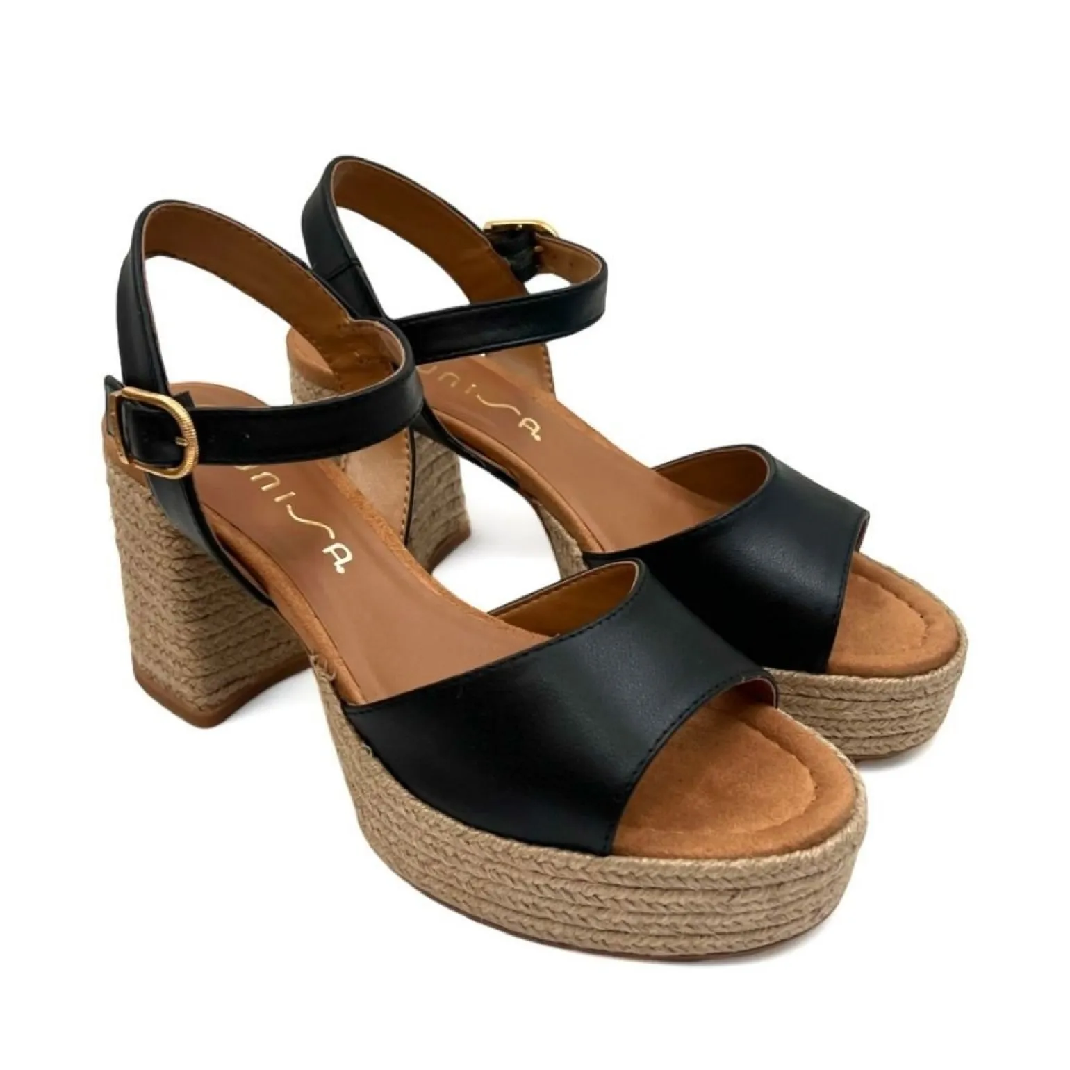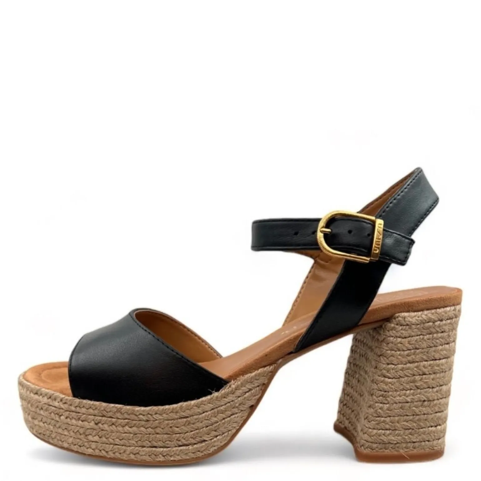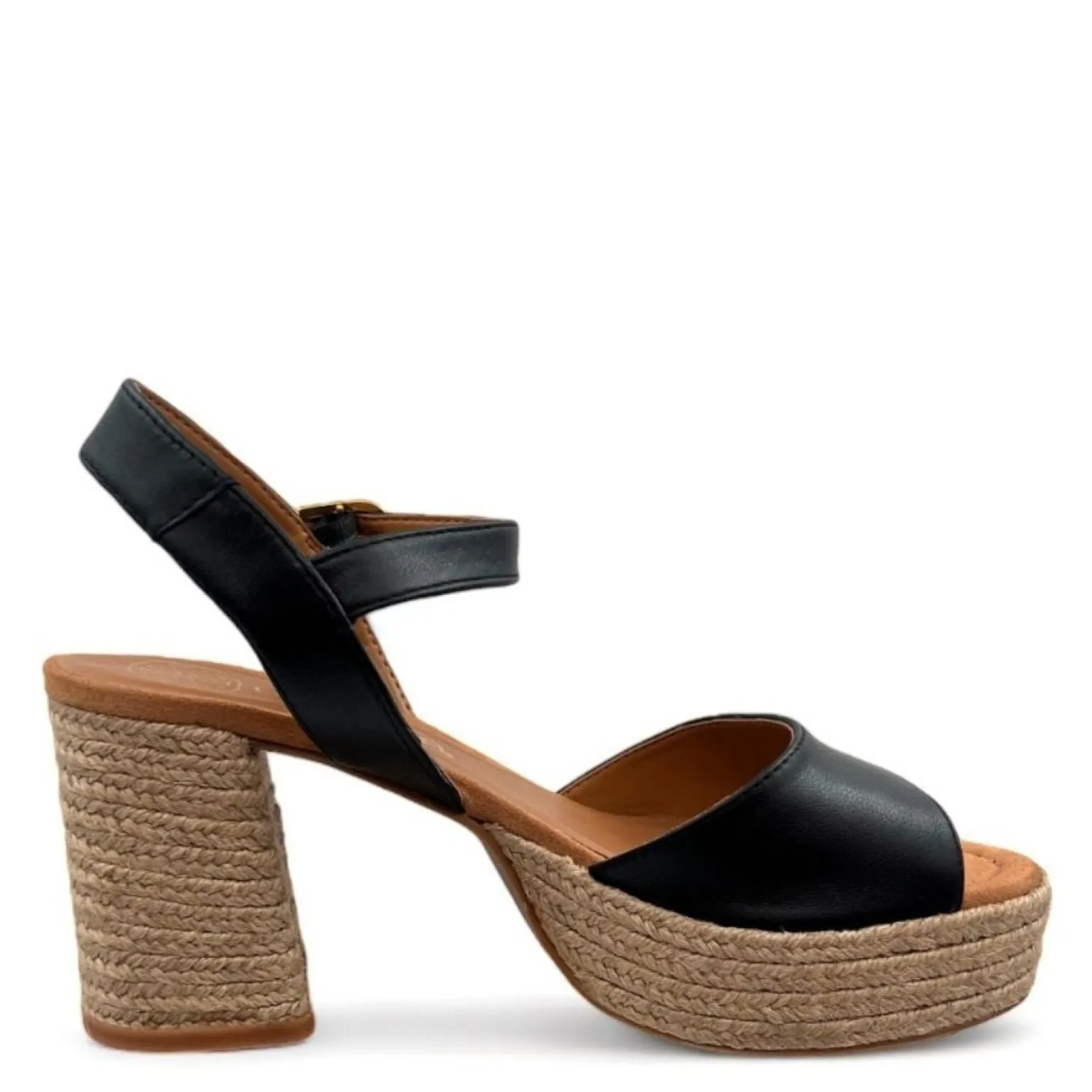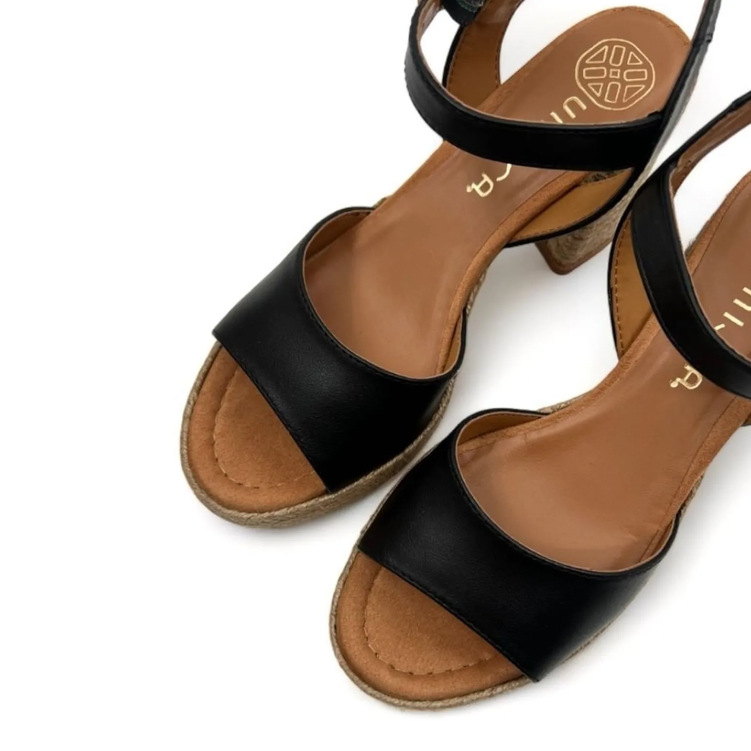 Remsandal 3.5 cm plateau/ 8.5 cm hæl betrukket med Jute. Let sål med non-slip sål.