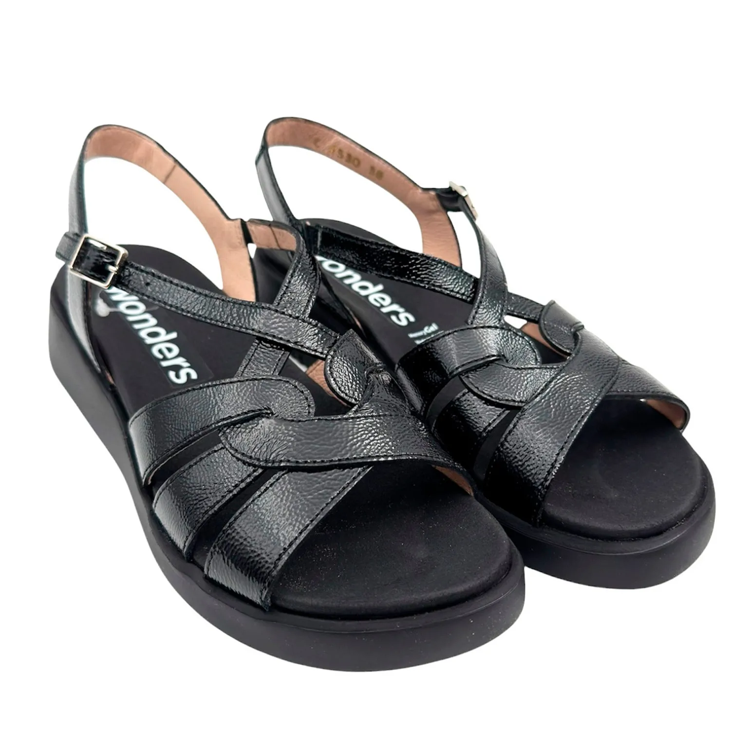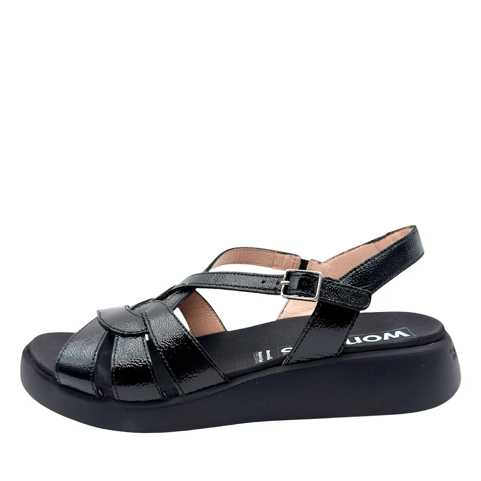 Blød remsandal med bagrem og letvægtssål. Vejer næsten ingenting og er en drøm at gå i. Fint dekorativt mønster henover foden samt regulerbar spændelukning.