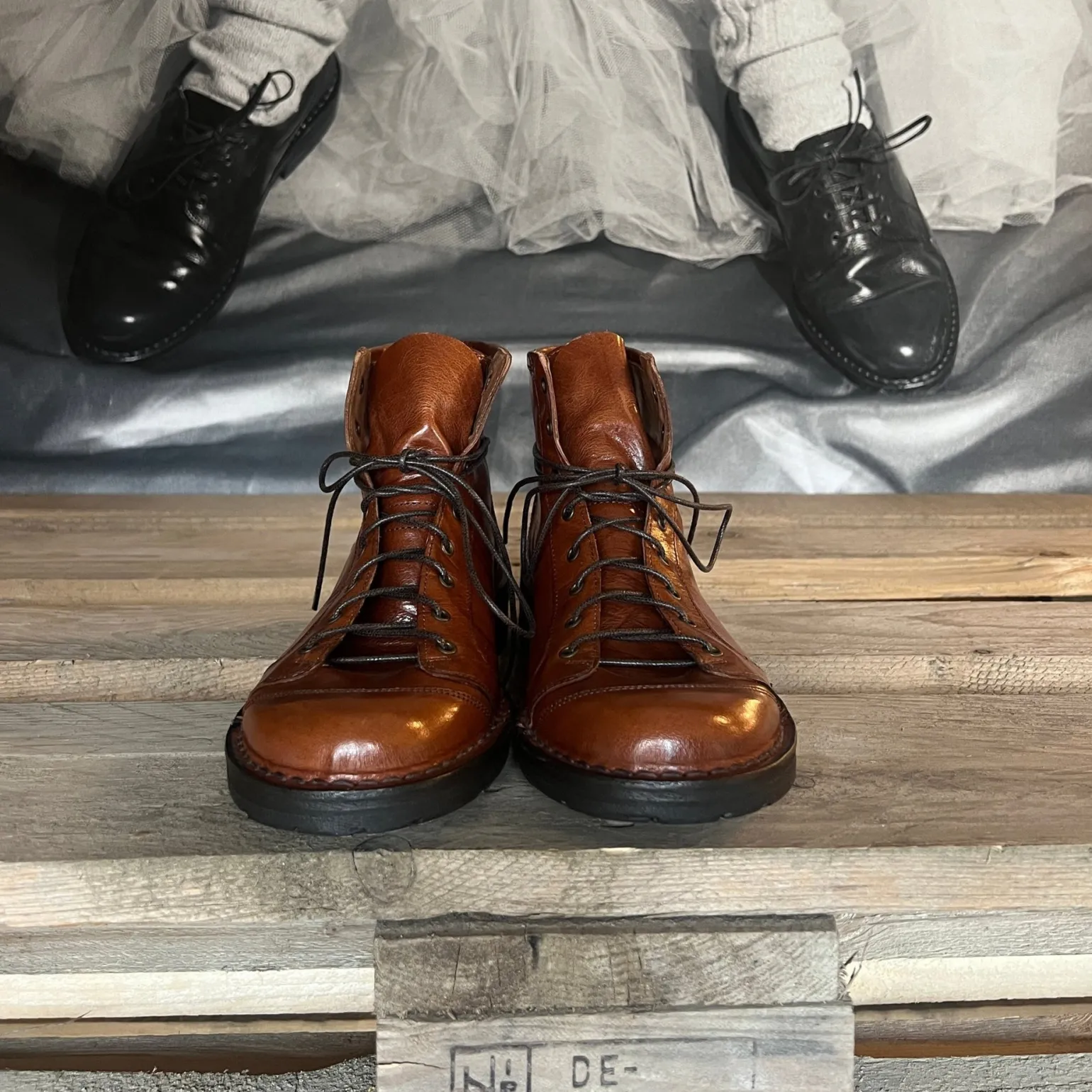 Fin, kort snørestøvle der kan bruges på flere måde. Brug den med pløsen bukket ned, så det retro Bubetti logo kommer til syne eller med pløsen oppe for et mere klassisk look.