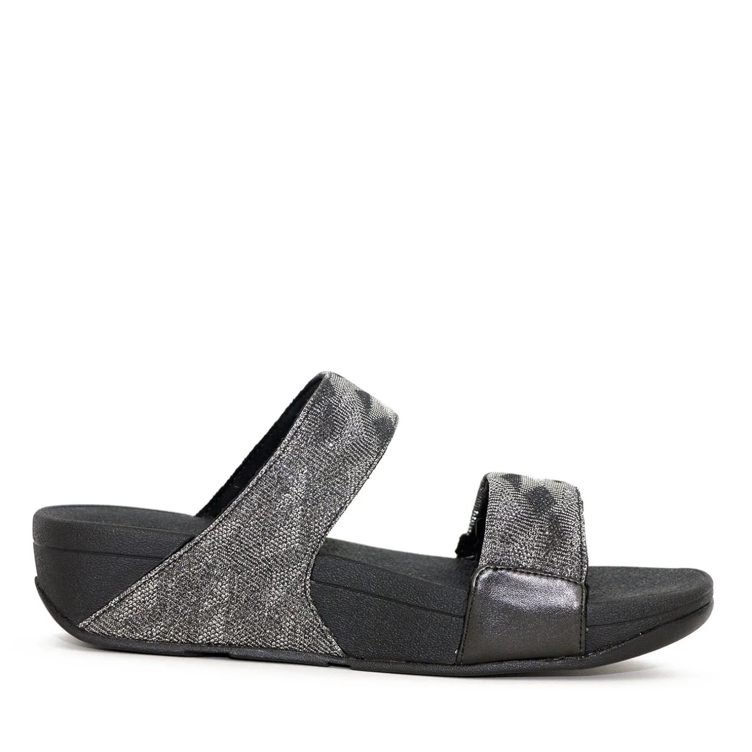 Super lækker sandal lavet i sort/sølv mønster med to remme og sømløs indbygget svang. Sandalen er åben bagtil. Lavet på den superbløde, trykfordelende standard Microwobbleboard™ mellemsål, der er let og har slidstærk gummibelægning. Almindelig pasform (bredde).